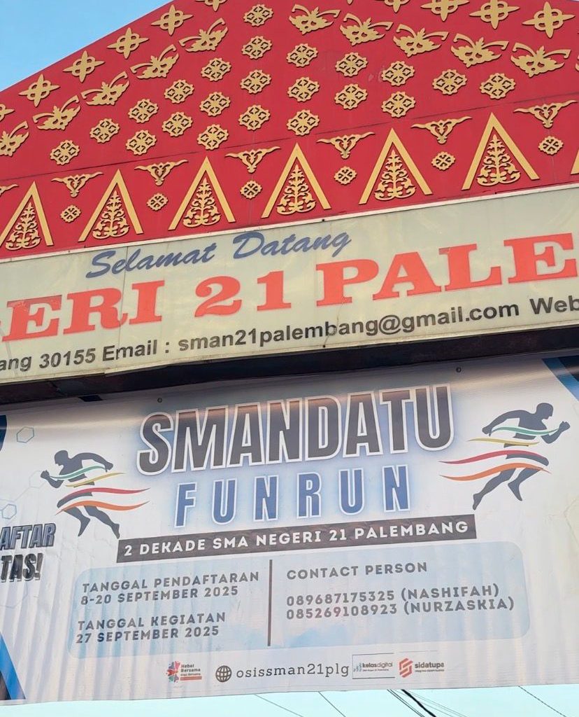 🎉 FUNRUN 20 TAHUN SMA NEGERI 21 PALEMBANG 🏃♂️🏃♀️ Tanggal 27 Oktober 2025 menjadi momen bersejarah! Sebanyak 1222 siswa dan 90 guru serta tenaga kependidikan berlari bersama dalam semangat kebersamaan dan kesehatan, memperingati Hari Jadi ke-20 SMA Negeri 21 Palembang. Langkah demi langkah, kami rayakan dua dekade prestasi, dedikasi, dan kebanggaan sebagai keluarga besar SMAN 21! 💙💛 #FunRunSMAN21 #20TahunBersama #SMAN21Palembang #MajuBersama #HebatBersama