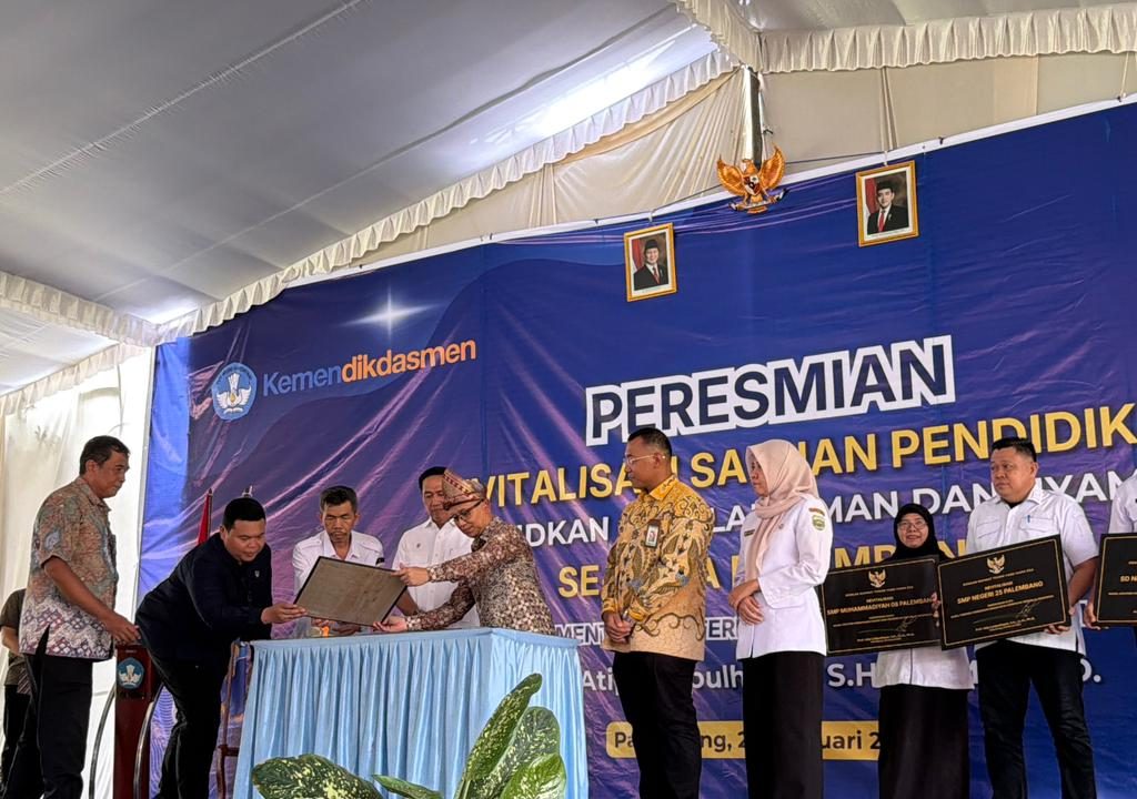 Wakil Menteri Pendidikan Dasar dan Menengah, Prof. Atip Latifulhayat, S.H., LL.M., Ph.D., meresmikan Revitalisasi Satuan Pendidikan se-Kota Palembang pada 25 Februari 2026 di SMA Negeri 21 Palembang.